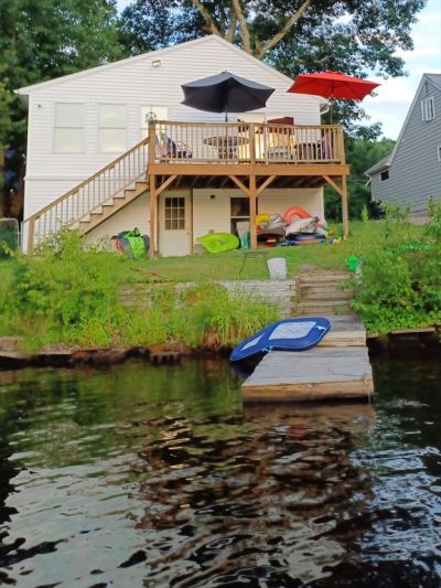 Lakefront living! Be in just in time for Summer! Welcome to this charming, completely furnished, rehabbed one-level home on Thompson Pond, a full recreational lake! Enjoy the deck, private dock, and beautiful outdoor space perfect for relaxing or entertaining. The open floor plan features an updated kitchen, expansive dining room, and French doors leading to a step-down living room with sliders to the deck and breathtaking sunset views over the water. Clean, turnkey opportunity!