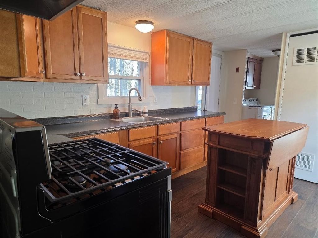 Lovely 2 BR 2 Full Baths Mobile Home that was upgraded during home ownership. The open kitchen boasts plenty of cabinets, counter space & kitchen island! New in 2023 stainless refrigerator & a gas stove.Large & bright living room area with wall decor & new in 2026 autumn oak vinyl flooring! Sunny front bedroom that connects to a full bath! Bath has a 2nd entrance for guests! Back bedroom is an en-suite with a fully upgraded bathroom with a large tub/shower, vanity, flooring & toilet! Front bedroom & back bath freshly painted.Washer/Dryer with top cabinet. Storage shed. During ownership: new skirting,front door, light fixtures in living room/kitchen...read more