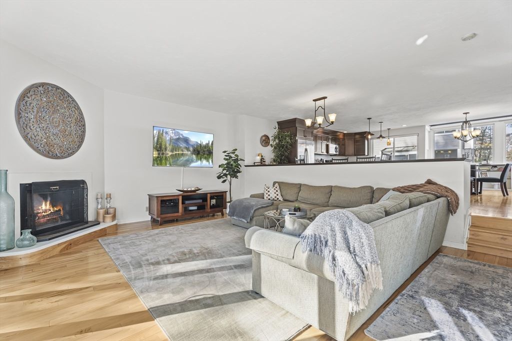 Corner-unit townhouse in desirable Chelmsford Village??over 2,500 sq. ft. of sun-filled, updated living! A bright living room with hardwood floors, fireplace, and sliders to a private composite deck set the tone. The impressive kitchen offers picture windows, granite counters, stainless appliances, an island with seating, breakfast nook, and open dining area??great for entertaining. Remote-access blinds add convenient privacy with a tap. Upstairs features a vaulted-ceiling primary suite with full bath, plus two additional bedrooms and another full bath. The finished lower level provides a large bonus room with direct two-car garage access....read more