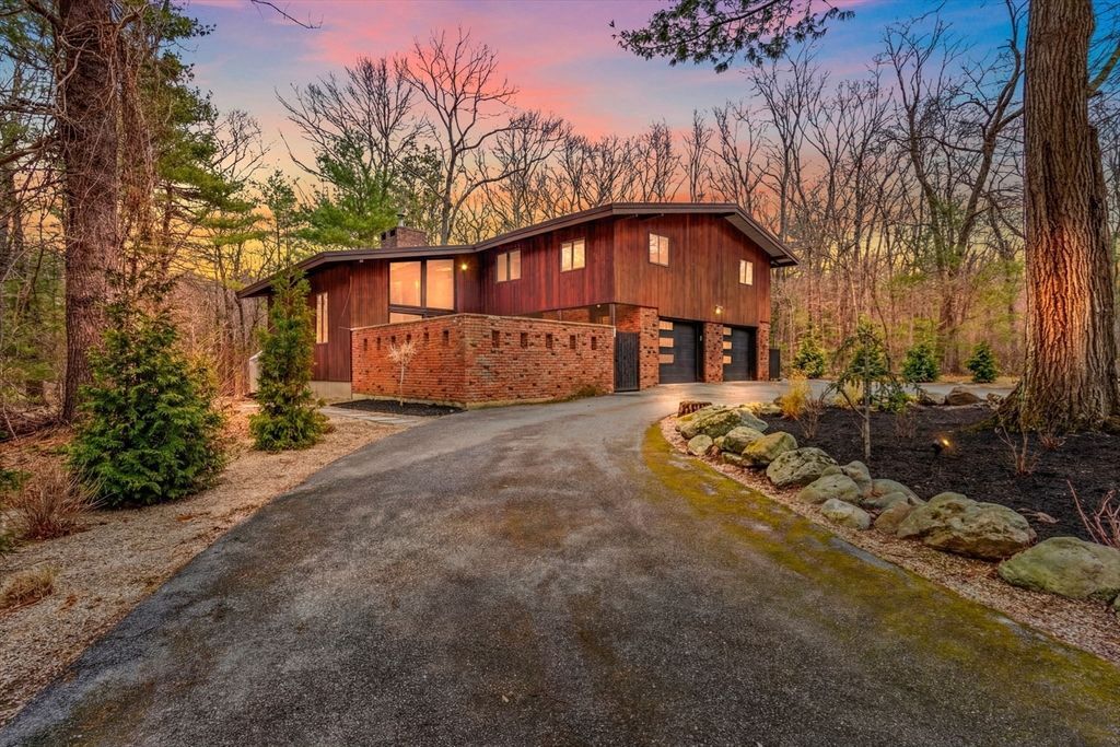 Tucked into nearly an acre of mature trees in Lexingtons Turning Mill neighborhood developed by architect Walter Pierce, this distinctive mid-century modern style home offers privacy, character and upgrades throughout. Clean lines and expansive windows fill each room with natural light creating a connection to the surrounding landscape. Thoughtfully designed for both gathering and retreat, youll enjoy generous living and dining areas, a welcoming Great Room with 15ft ceiling anchored by a dramatic double-sided fireplace, large sunroom, updated kitchen and baths. Five bedrooms spread across the upper level, including a primary with ensuite....read more