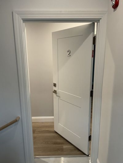 Gut renovated in 2022, this sun-filled 3-bedroom, 2-bath unit offers a functional and flexible layout with an eat-in kitchen, driveway parking for up to 2 vehicles, EV charging, central air conditioning, in-unit washer and dryer, and a newly built private back porch for outdoor enjoyment. Well-proportioned rooms with ample closet and storage space throughout, along with updated, energy-efficient systems. Additional off-street parking available with no permit required for street parking. 700+ credit score required.