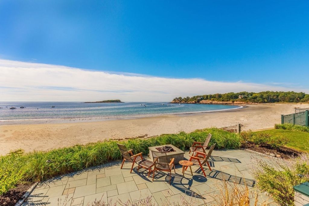 Rare beachfront offering in Manchester-by-the-Sea. This authentic shingled Arts & Crafts coastal home sits directly on the sand, offering panoramic ocean views and a private beach. Ideally located near conservation land, the village, and commuter rail to Boston. Originally built c.1928 and thoughtfully renovated, the home features classic Shingle-Style details, a floor-to-ceiling fieldstone fireplace, and walls of windows framing the sea. The chefs kitchen with center island, stainless appliances, and vaulted ceiling captures stunning water views. Lower level includes a private guest suite with kitchen, living area, and game space. .A covered...read more