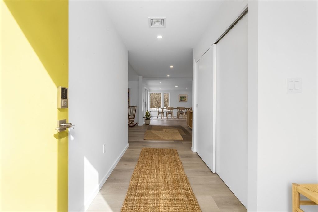 A sensationally serene home in the desirable Beechwood neighborhood, overlooking Aaron River and just steps from the trails of Wompatuck State Park. Owner architect designed and built, this bright, open-concept interior features expansive windows that frame peaceful woodland views, displaying a tranquil backdrop for everyday life. Natural light is delightfully captured throughout. The primary bedroom suite privately spans the second-story with bathroom and two closets, including a large walk-in. Another two bedrooms and full bath rest on the first floor. A sharp eat-in-kitchen is well-located near a pragmatic entry and laundry area. ...read more