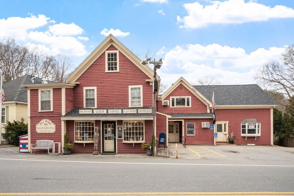 Rare opportunity to own a landmark mixed-use property in the heart of charming Boxford. High-visibility location on a busy main street with strong frontage and excellent exposure. Property features 4 retail units, 1 office suite, and 2 one-bedroom residential apartments, offering multiple income streams. Additional basement storage provides tenant storage or potential expansion. Recent improvements include a brand-new septic system. Ample parking with 10??15 spaces in rear lot plus additional parking in front of the building. Located in the heart of picturesque Boxford, this is a rare chance to acquire a true community landmark with multiple...read more