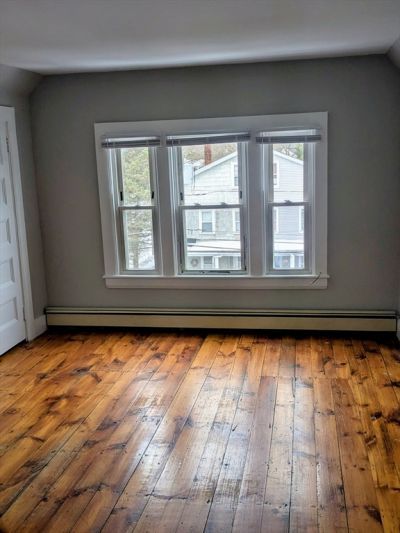 3rd floor 3 room 1 bedroom apartment with nice views and rear private deck. Freshly painted interior and new flooring in the kitchen and bath. Lots of storage and closet space - laundry included. Common yard and patio area plus parking in the driveway for 1-2 cars. Available anytime - sorry no pets or smokers. Tenant pays their own heat, (gas), hot water and electricity. References required