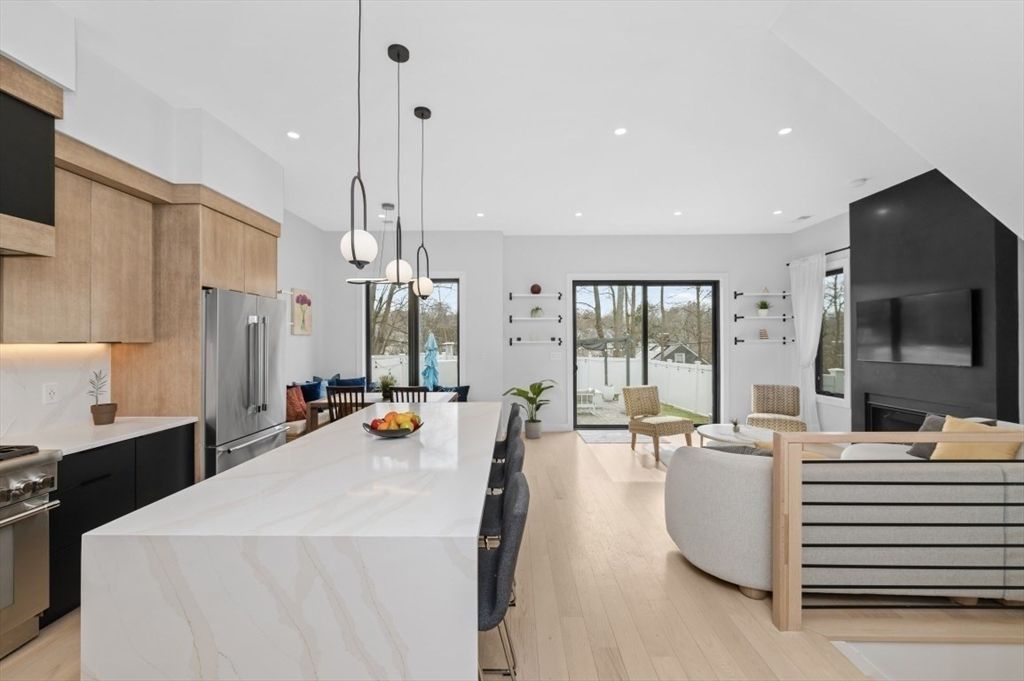 Dwell in fine design, privacy & opulence in this 2023 townhouse rendering the pleasures of single family living. The stunning Kitchen offers stone counters, top-of-the-line appliances, high-end fixtures & a large waterfall island leading to a dining & living room area featuring a modern stone fireplace. The high ceilings & oversized style windows offer an abundance of natural light from three exposures. Upper floors host private quarters that include a Master Suite, deluxe designer bath offering a spa-like experience & a generous custom walk-in closet; two additional Bedrooms, an oversized deck, a full Bath, plus a laundry room. The lower...read more