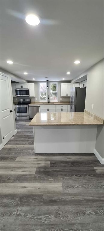 This beautiful apartment is located on the first floor of a building that was rebuilt in 2024, featuring living room, eat-in kitchen with granite countertops. and stainless steel appliances, 2 bedrooms, one bathroom and laundry in unit with stackable washer and dryer. There are recessed lights throughout! Central A/C, hot water and electricity are included with the rent. This home sits in a beautiful farm setting with 30 acres of land. There is a patio on the back! This location is wonderful, it is a great place to make it your home.